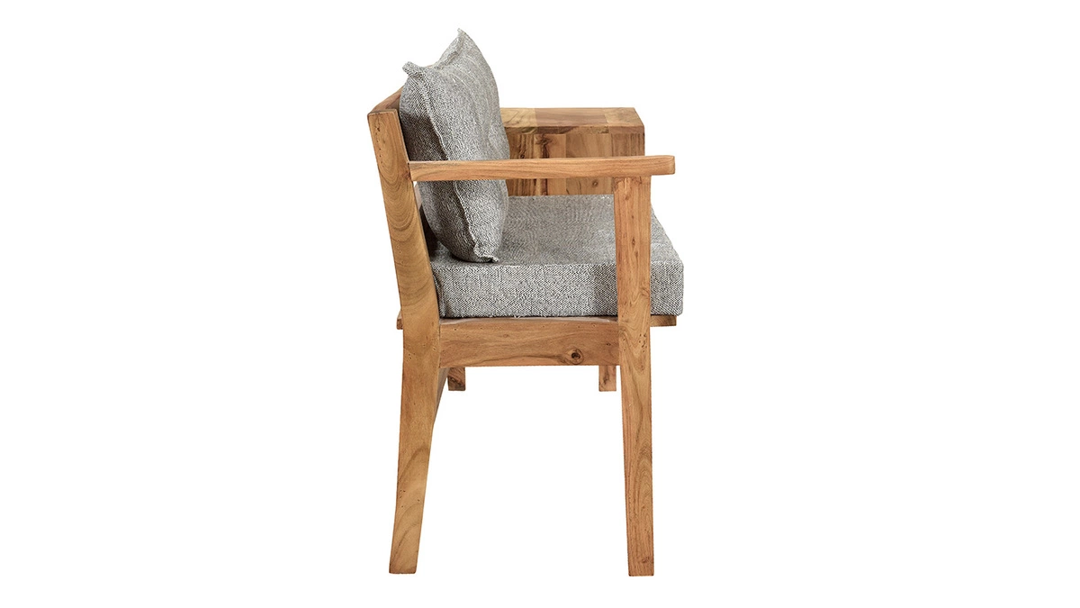 Au charme brut, la structure de ce banc en bois accueille une banquette accompagnée d’un coussin de dossier aux détails capitonnés : idéal pour se chausser confortablement installé ! Afin de créer un ensemble harmonieux, son assise revêt un doux tissu couleur gris chiné.