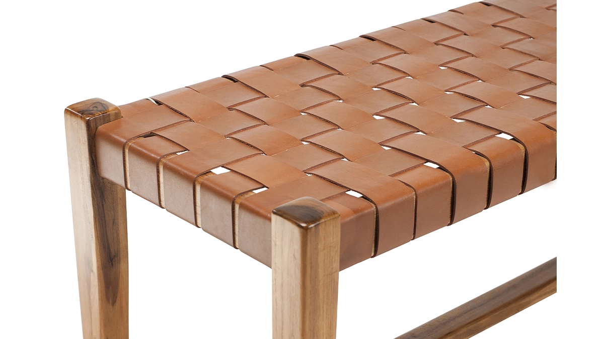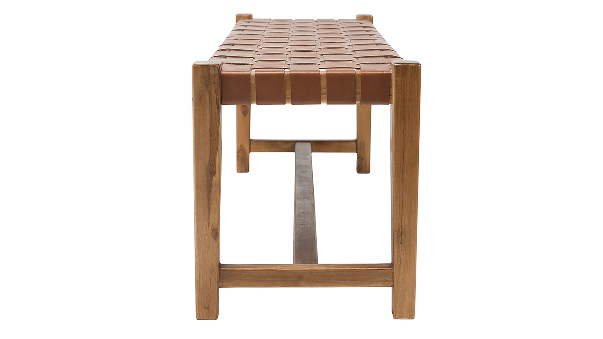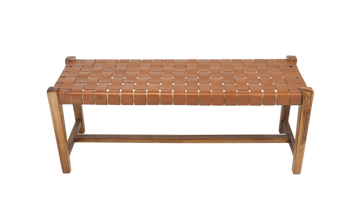 Associant teck massif et cuir de vache tressé, ce banc d’intérieur est un véritable atout déco. En plus de proposer une nouvelle façon de s’asseoir très actuelle, ce banc ethnique se distingue par sa conception et ses matériaux. C’est une pièce artisanale dont le cuir a été tressé à la main. Il est complété par une structure en teck, une essence de bois tropicale, appréciée pour ses jolies nuances et sa solidité. Ce banc marron en bois et sangles de cuir est une pièce d’exception, au charme fou.