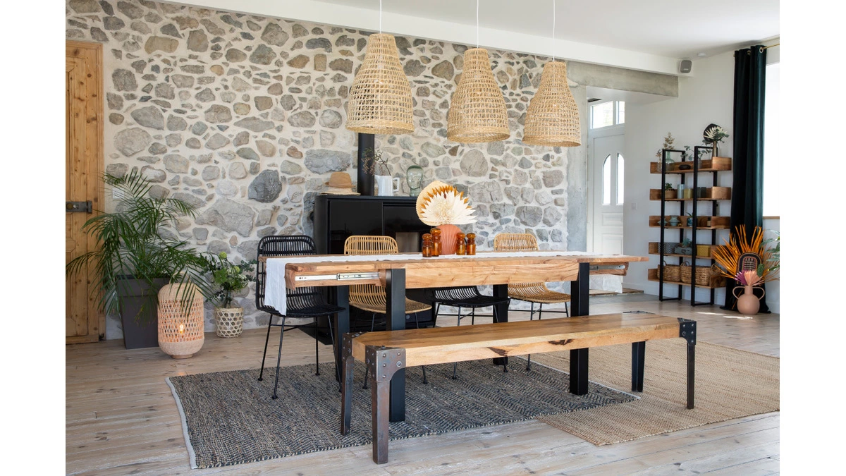 Parfait pour des repas conviviaux, que ce soit en famille ou avec des invités, ce banc en bois massif L180 cm saura vous ravir. Ce banc d’intérieur en manguier massif, est ultra résistant. Naturellement teinté de variations de couleurs, son essence de bois exotique a une excellente conservation et saura vieillir à vos côtés sans prendre une ride. Les pieds se relient au plateau par des cornières rivetées en métal noir, pour une stabilité à toute épreuve.