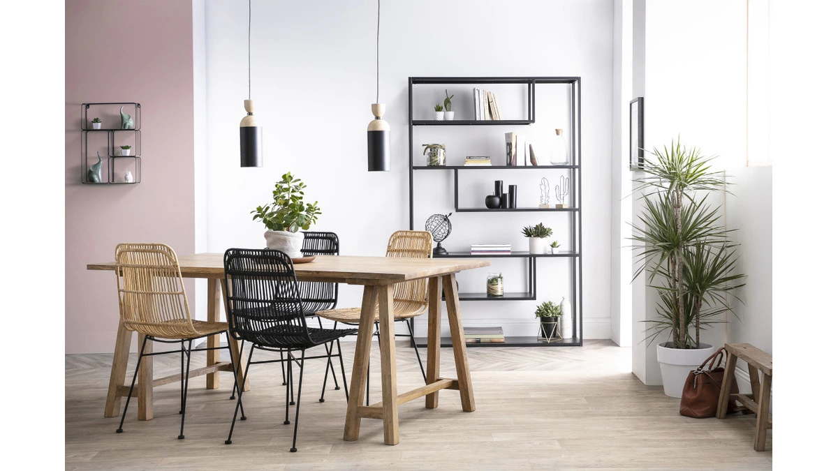 Les plateaux, disposés en quinconce donne une touche très graphique et décalée à la silhouette aérienne. Elle peut également vous servir de séparateur de pièce afin de délimiter deux espaces sans alourdir et cloisonner une pièce de vie.