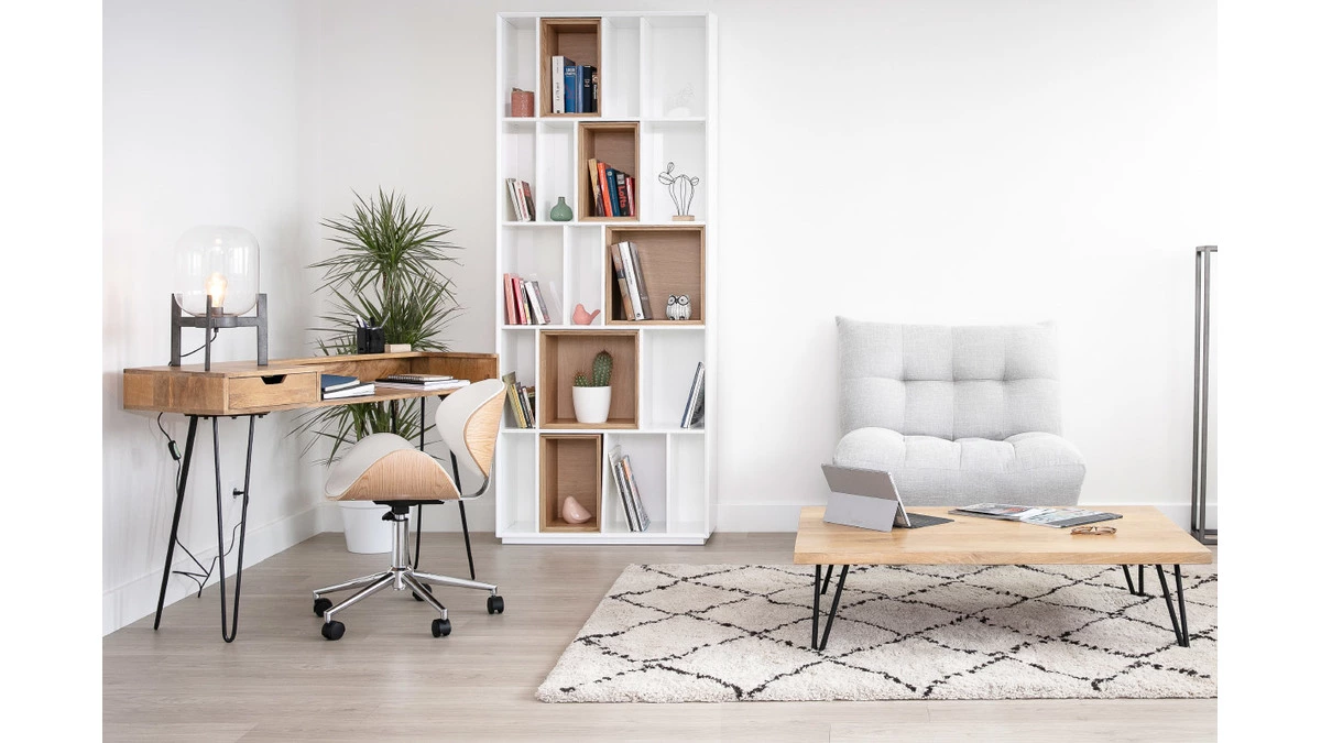 Bien que cette bibliothèque design, à la fois esthétique et fonctionnelle s’envisage dans de nombreuses ambiances déco, elle aura toute sa place aux côtés de meubel