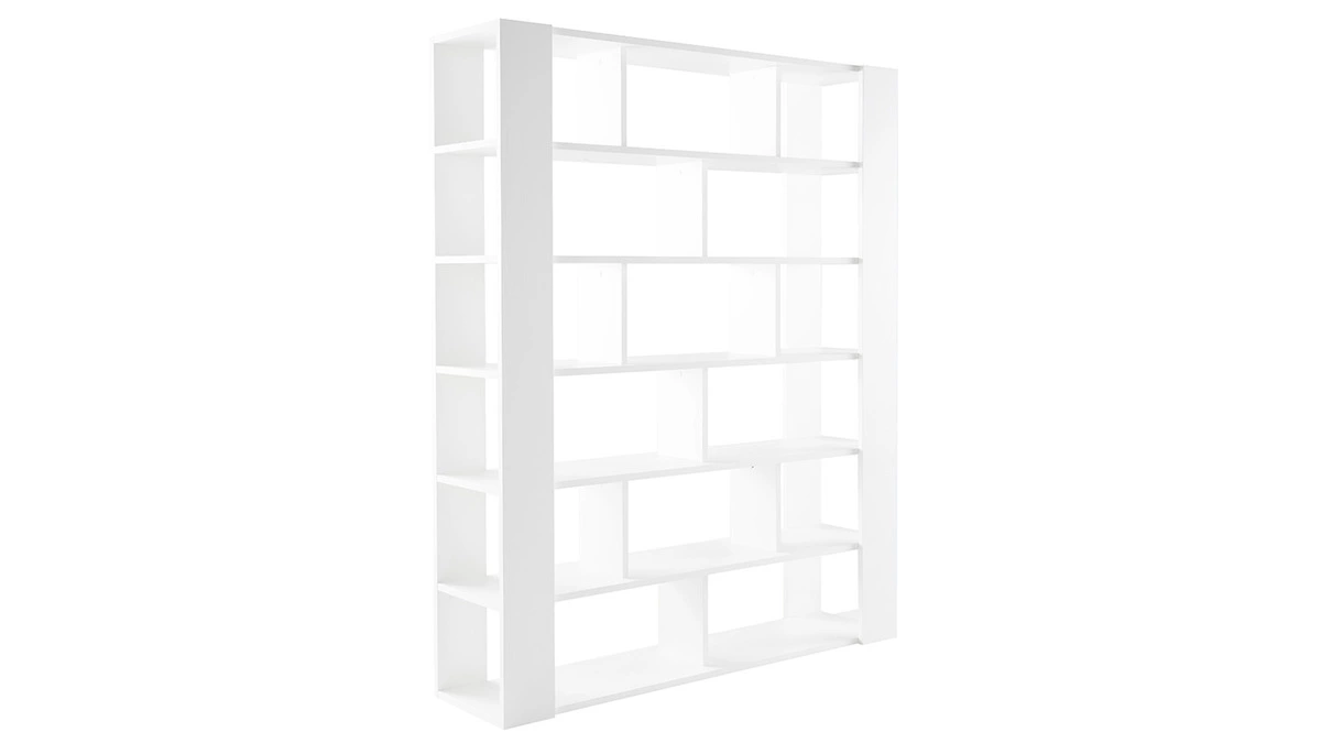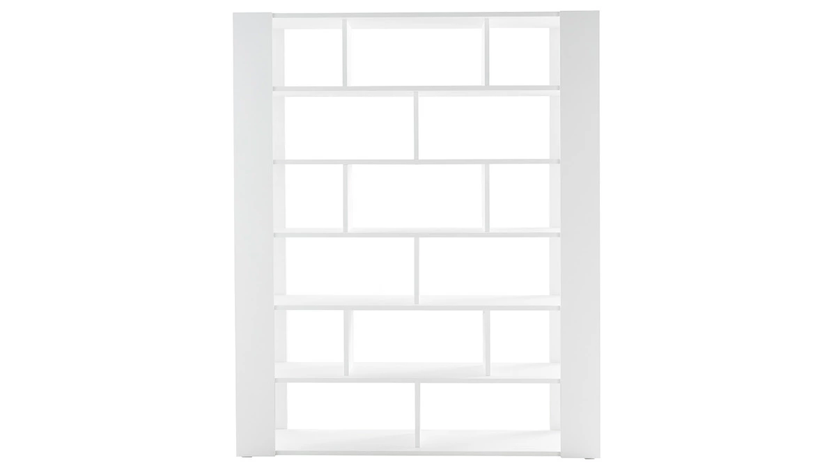 Ce modèle MUSSO comprend pas moins de 15 niches pour organiser toutes les affaires de la maison. Ses dimensions généreuses et sa structure en mélaminé blanche accueilleront livres, boîtes de rangement, lampes et objets déco avec style.