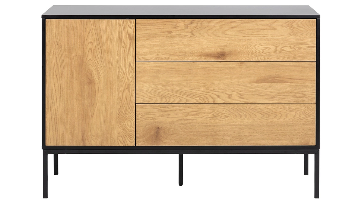 Buffet Bas Industriel Bois Et Métal Noir 1 Porte 3 Tiroirs L120 Cm TRESCA
