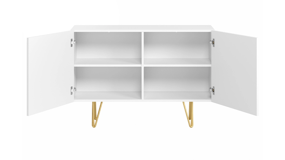 OZEN habillera avec caractère une pièce de vie en quête d’élégance et de rangements ! Si son gabarit, aux dimensions L107 x P73 x H35 cm, n’encombrera pas l’espace, ses 4 niches fermées offriront de beaux volumes pour ranger de la vaisselle, du linge de maison, des produits secs… Signature d’un look assurément épuré, les portes de ce petit buffet blanc sont équipées de charnières avec système d’ouverture push and pull. Tout indiqué dans une cuisine ou salle à manger en tant que vaisselier, son esthétisme et sa praticité sauront également se faire valoir dans un bureau, une entrée ou encore une chambre.