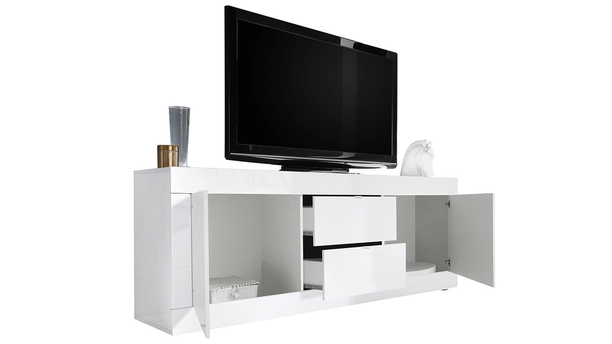 Magnifique petit bijou de design, ce buffet à l’allure élégante et à la ligne minimaliste a tout pour devenir la pièce maîtresse d’un salon contemporain. Sa forme épurée et parfaitement symétrique lui donne un style résolument moderne. LATTE est un buffet en panneaux de fibres de bois à l’allure massive et actuelle. On aime particulièrement sa finition laquée blanc brillant. Lumineuse et facile d’entretien, elle s’intègre facilement dans les intérieurs contemporains.
