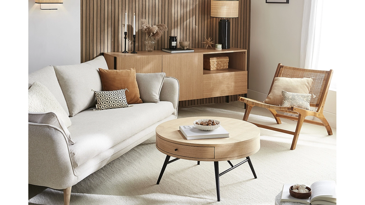 Apportez une touche personnelle au plateau que vous pourrez décorer de quelques accessoires déco comme des cadres, une plante verte ou encore une lampe à poser pour instaurer une ambiance douce et feutrée dans votre pièce de vie.