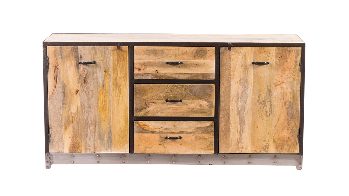 Ce buffet industriel en bois massif est fait de façon artisanale : sa patine et ses marques d’uruses sont donc différentes et surtout uniques pour chaque meuble.