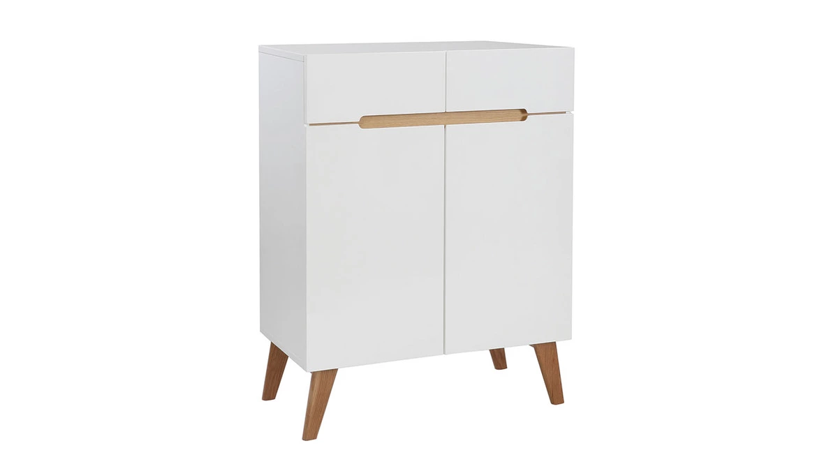 Un petit buffet qui a tout d’un grand ! Avec ses dimensions L80 x P42 x H103 cm ce petit scandinave est une aubaine pour les petites pièces de vie en quête d’organisation ! Deux tiroirs équipés d’une fermeture soft et six niches fermées réglables en hauteur pour vous permettre d’adapter vos rangements en fonction de vos besoins !