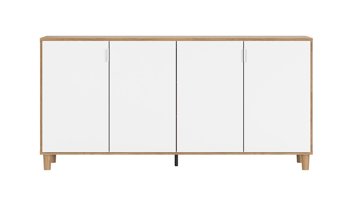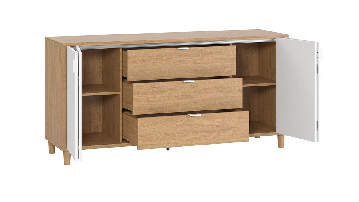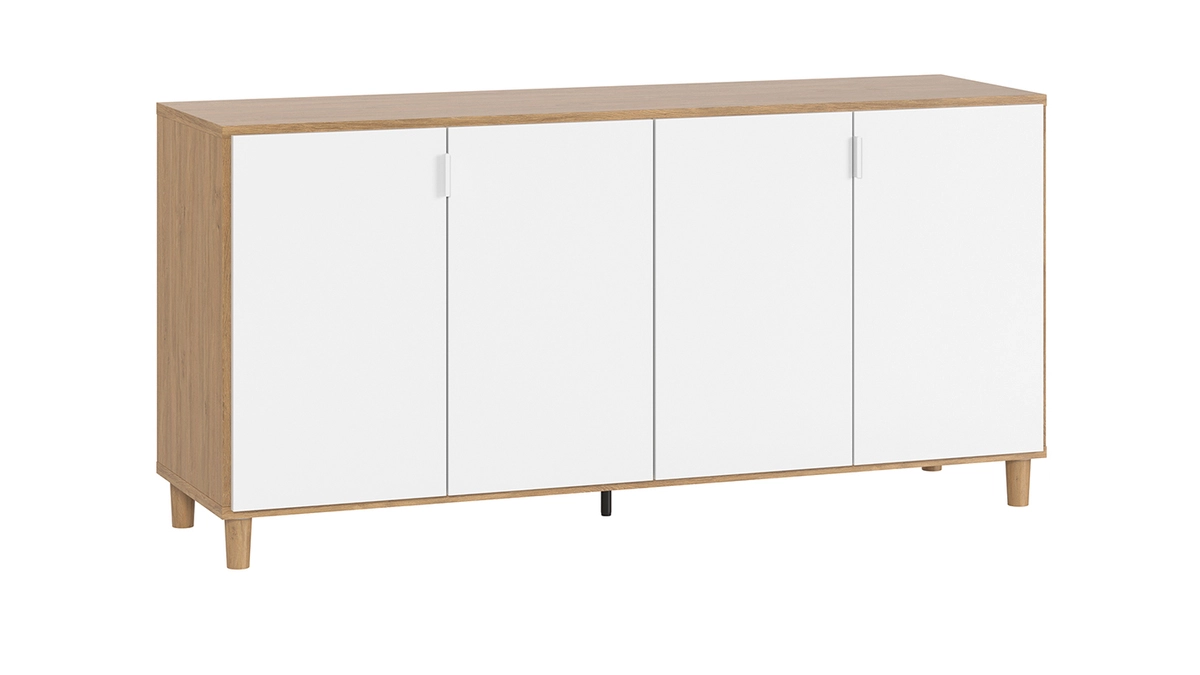 À première vue, ce buffet est un joli meuble scandinave intemporel travaillé dans un style épuré. Une ligne simple et une teinte discrète caractérise ce modèle qui se glisse parfaitement dans tous les intérieurs. VESTA marie avec brio une structure en panneaux de fibres de bois finition blanc mat et bois et un piètement authentique en chêne massif. C’est une pièce de mobilier discrète et chaleureuse à installer aussi bien dans le salon que la salle à manger.