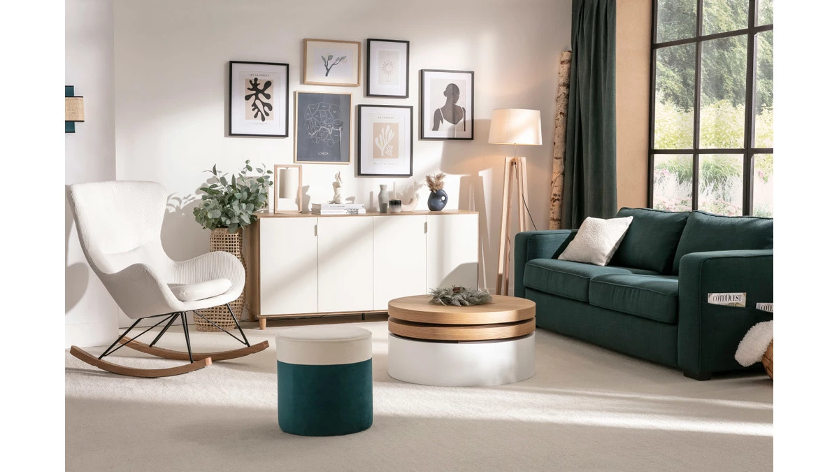 Disposez une lampe à poser et quelques objets déco sur votre buffet bas pour habiller la pièce en un clin d’oeil.