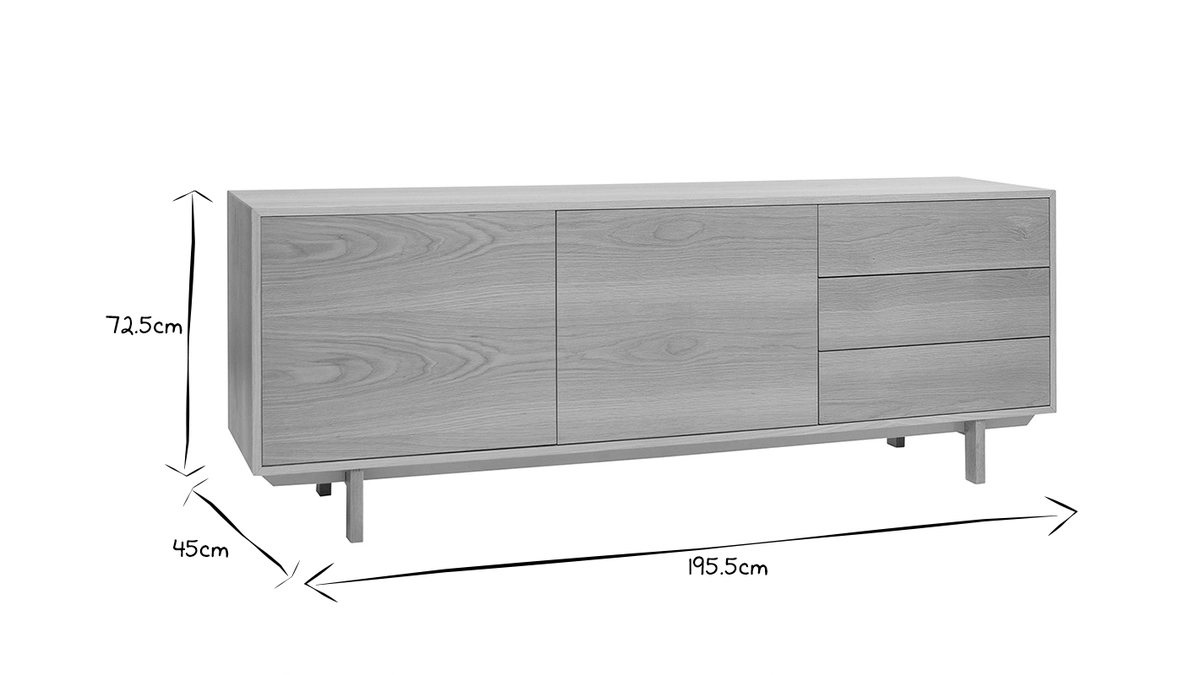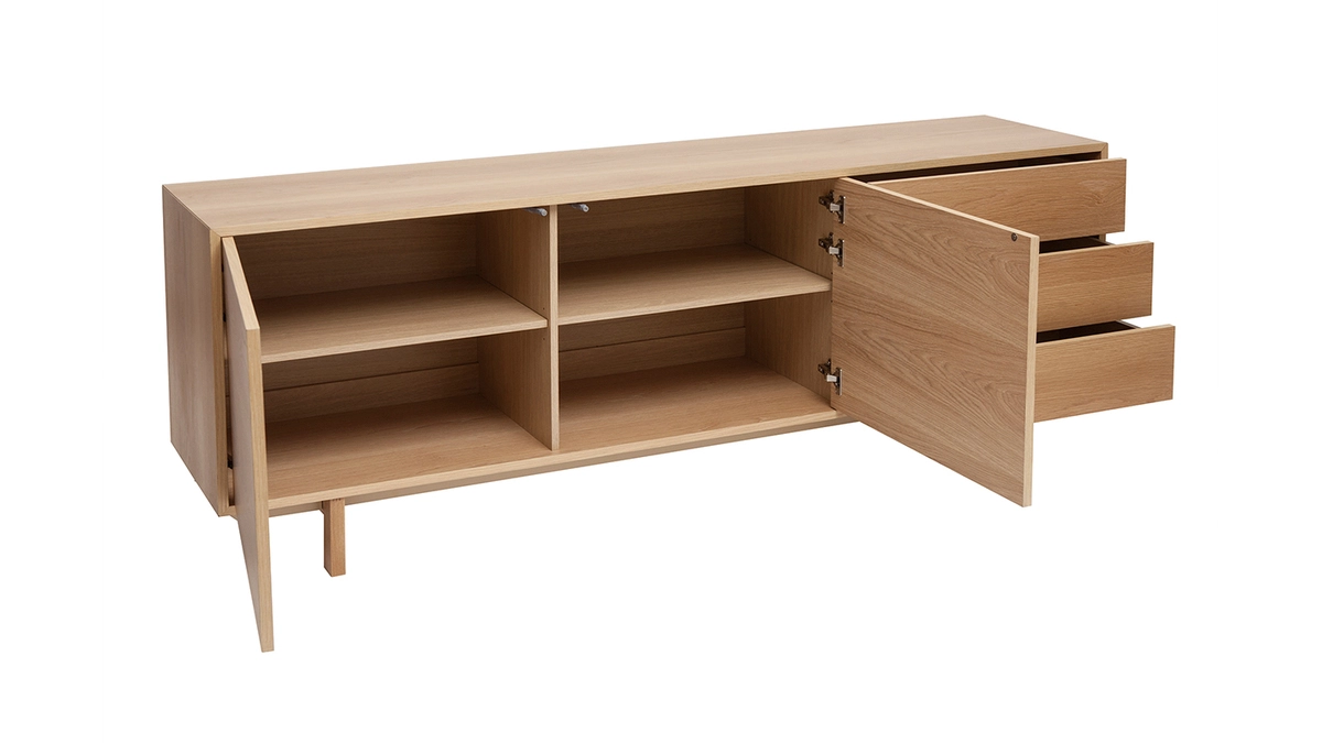 Composé d’une structure en panneaux de fibres de bois placage chêne et d’un élégant piètement en chêne massif, ce buffet scandinave signe la promesse de nombreuses années à vos côtés !