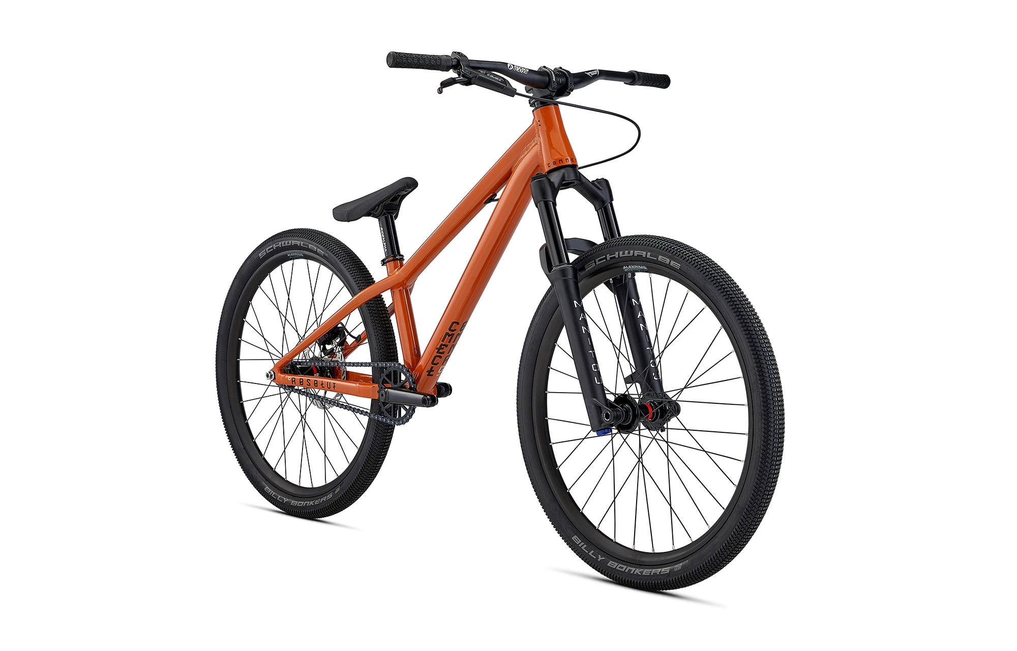 Avec sa peinture ‘Orange’ et ses composants noirs, l’ABSOLUT 24 a tout pour plaire ! Il est équipé d’une fourche MANITOU Circus Expert 24”, une référence dans son domaine pour sa fiabilité et son fonctionnement. Notamment grâce à un ressort pneumatique qui permet de la durcir. On retrouve également un pédalier 3 pièces type BMX avec des manivelles courtes de 140 mm, résistant aux chutes. Les jantes ALEXRIMS, équipées de nouveaux moyeux NOVATEC single speed, sont robustes et conçues pour la pratique du dirt. Les pneus SCHWALBE, parfaitement adaptés au programme de l’ABSOLUT, bénéficient d’un excellent rapport roulement/grip latéral. Enfin, on retrouve un cockpit spécialement adapté aux enfants avec un cintre SDG de 650 mm, une potence courte (40 mm) et des grips SDG spécifiques aux petites mains.