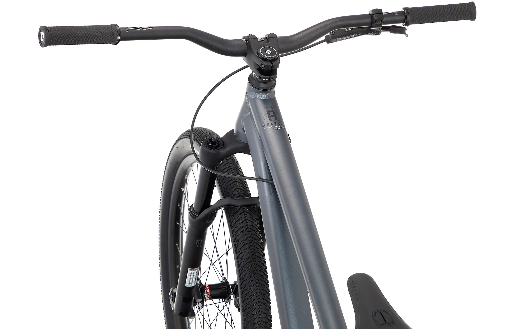 Il est équipé d’une fourche MANITOU Circus Expert, une référence dans son domaine pour sa fiabilité et son fonctionnement. Notamment grâce à un ressort pneumatique qui permet de la durcir. On retrouve également un pédalier 3 pièces type BMX, rigide et résistant aux chutes.