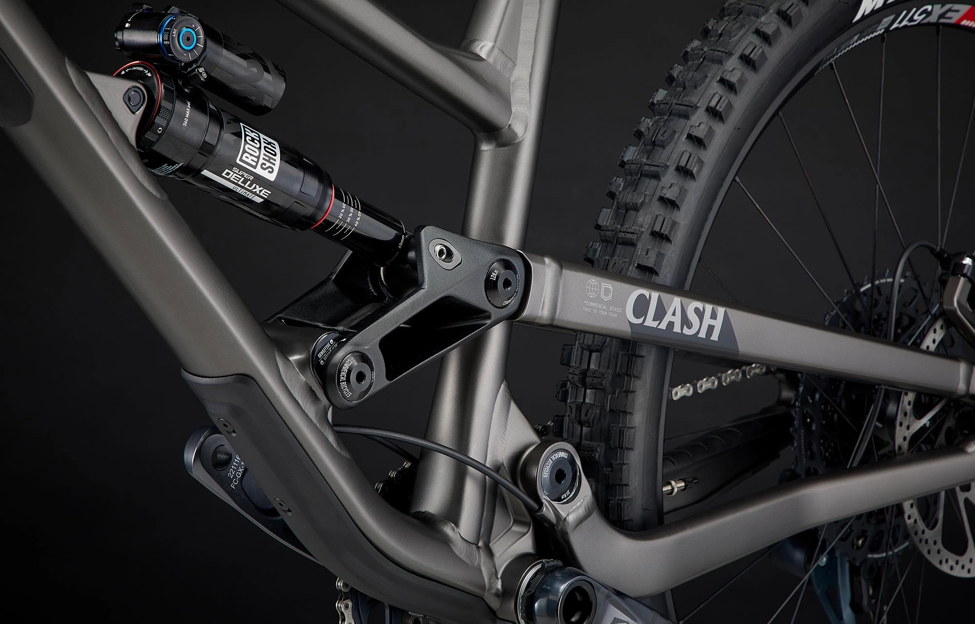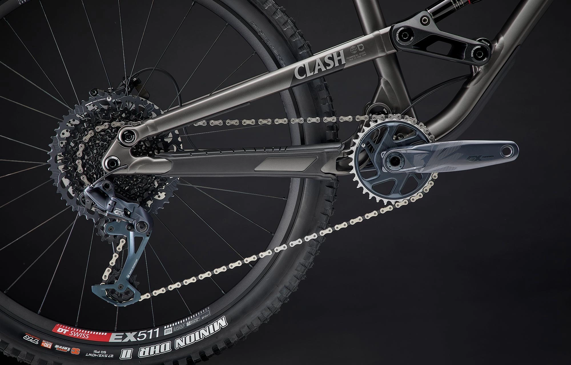 Le CLASH est le Bike à tout faire : Bike Park, Enduro, grosses lignes de jumps ou sorties à la pédale… il est excessivement polyvalent !