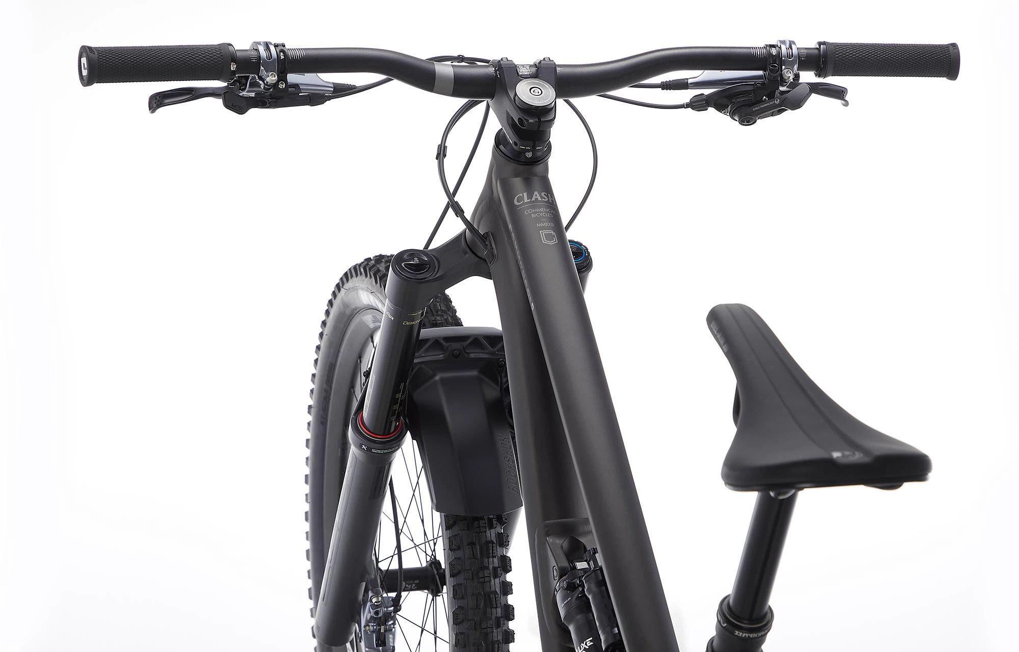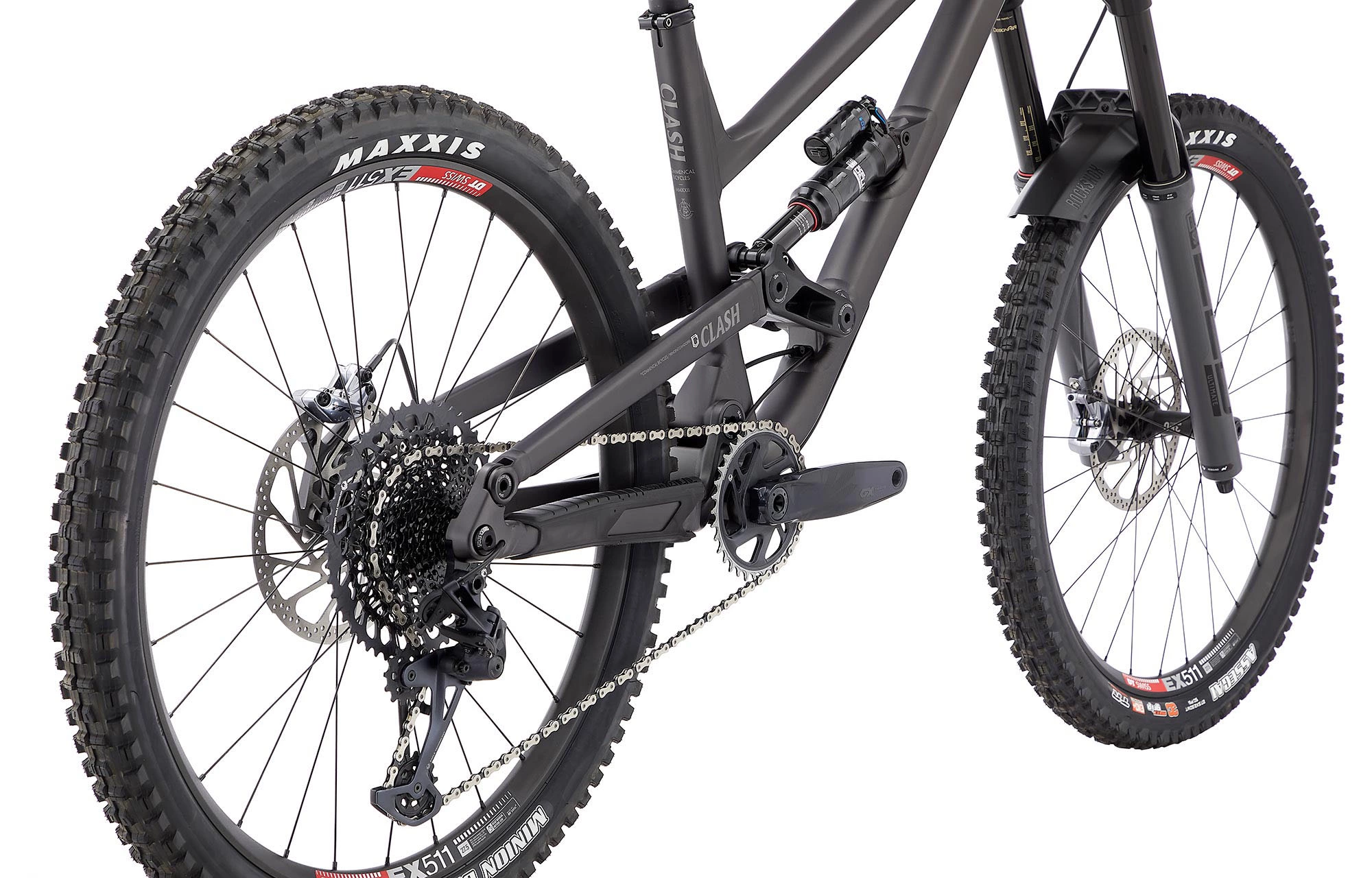 Le CLASH est le Bike à tout faire : Bike Park, Enduro, grosses lignes de jumps ou sorties à la pédale… il est excessivement polyvalent !
