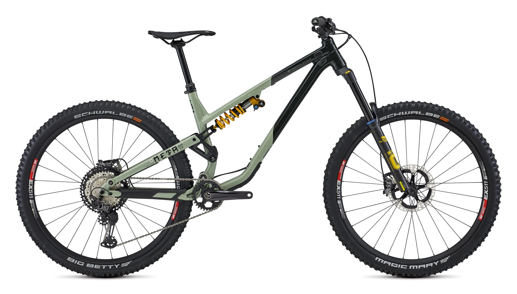 Le META AM 29 ÖHLINS EDITION est la grosse nouveauté de notre gamme Enduro ! Pour ce montage tout particulier, il dispose d’une peinture Heritage Green / Dark Green qui s’accorde parfaitement avec les suspensions ÖHLINS.
