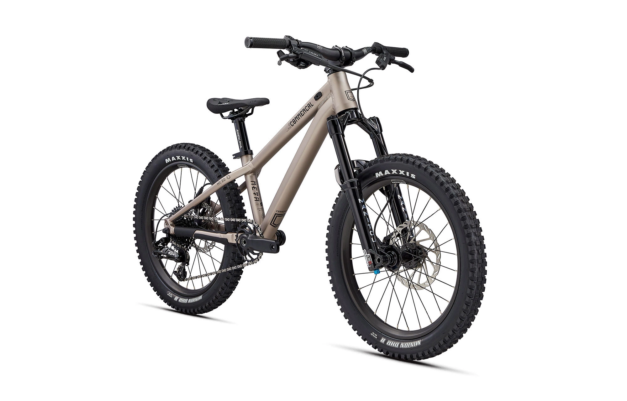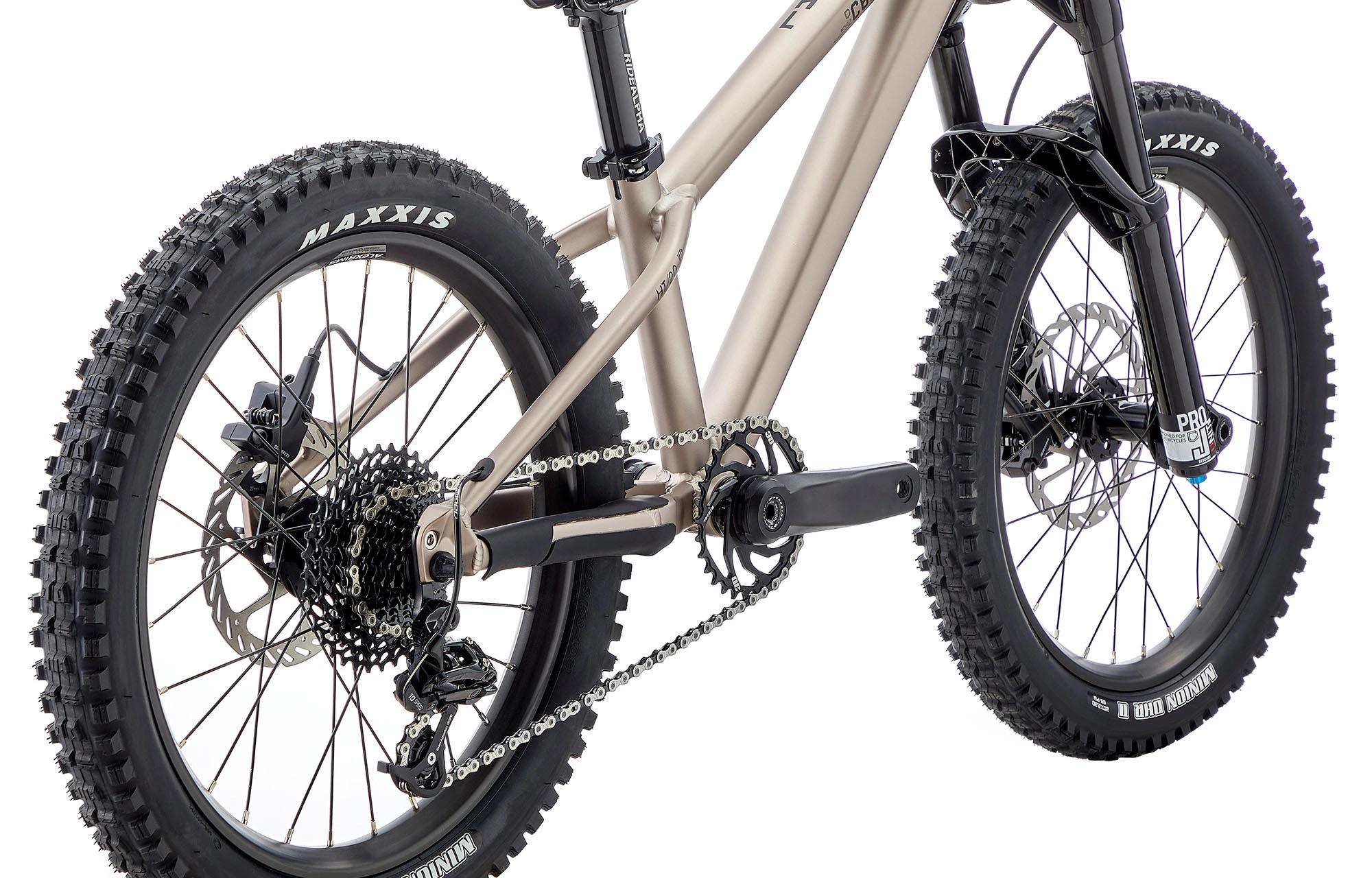 Nos vélos équipés de roues en 20 pouces s’adressent à des enfants mesurant entre 115cm et 135cm. A cet âge-là, les enfants commencent à avoir plus d’expérience sur le vélo, un peu plus de force et d’endurance. Ils peuvent envisager des sorties plus longues, sur des terrains plus accidentés. Les plus courageux se lanceront même sur des pistes de Bike Park. Leur vélo doit donc être à la hauteur de l’évènement.Dans cette tranche d’âge, nous proposons trois options, qui ont pour principale différence la présence de suspensions ou non. Les trois vélos étant équipés d’un dérailleur, de freins à disque et de vrais pneus à crampons dignes de VTT d’adultes.Les RAMONES 20” sont dotés d’un cadre et d’une fourche rigides. Au-delà de l’impact sur le prix du vélo, l’absence de suspensions permet un meilleur rendement, un gain de poids et une facilité d’entretien. Par ailleurs, la rigidité est compensée par des pneus de 2.6 de section, qui peuvent être légèrement sous-gonflés pour apporter plus de confort et de grip. En 2022, ils sont revus en profondeur et montent en gamme avec de nouveaux tubes extrudés, une fourche rigide en aluminium, de nouvelles roues et de nouveaux cockpits, mieux adaptés à leur morphologie.Du côté des META HT 20”, le cadre aussi est rigide, mais il est équipé d’une fourche télescopique de 100mm de débattement. En 2022, cette fourche est spécialement développée par nos ingénieurs en collaboration avec MANITOU. L’objectif principal étant de réduire au maximum les frictions pour que le débattement soit utilisé, même sur les petits chocs et pour les plus petits gabarits. Le confort et le grip sont exceptionnels pour un vélo de cette taille.Enfin, le CLASH 20” est la référence sur le marché des vélos tout suspendus en 20 pouces. En 2022, il connait de nombreuses évolutions : nouvelle géométrie, nouvelle esthétique… La cinématique change elle aussi. Bien plus qu’un CLASH avec un petit cadre, la cinématique est exclusivement pensée pour ce cadre. Elle permet aux suspensions d’apporter du confort et du grip quel que soit l’obstacle malgré un poids plume. La fourche télescopique MANITOU de 120mm, l’amortisseur ROCKSHOX et les freins à disque permettent aux plus jeunes de se lancer sans crainte sur des pistes de descente techniques.