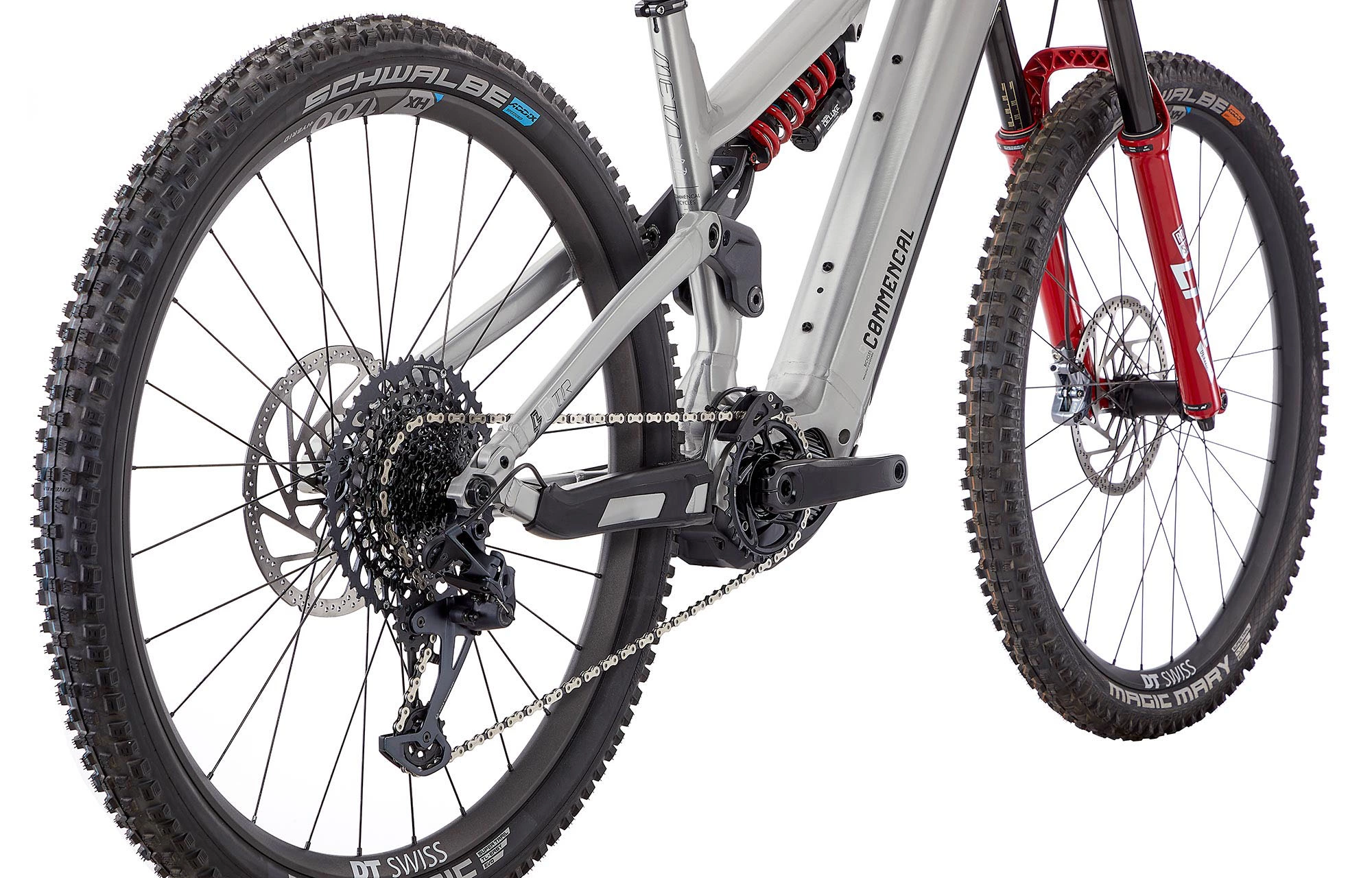 Ultra efficace en moyenne montagne, ce META POWER TR RACE se voit équipé de freins TRP DH-R Evo 4 pistons. Un choix cohérent afin d’assurer des freinages puissants et durables en toutes circonstances. La transmission SRAM GX Eagle en 10-52t n’a plus à prouver sa fiabilité et saura vous emmener partout. Pour encore plus de dynamisme et de solidité, les roues DT SWISS HX1700 Spline spécifiques eBike viennent compléter ce montage haut de gamme, parfait pour enchainer les grosses sorties en moyenne montagne. Enfin, le moteur SHIMANO EP8 et sa batterie de 630 WH offrent la possibilité à ce modèle d’aller partout, tout le temps.
