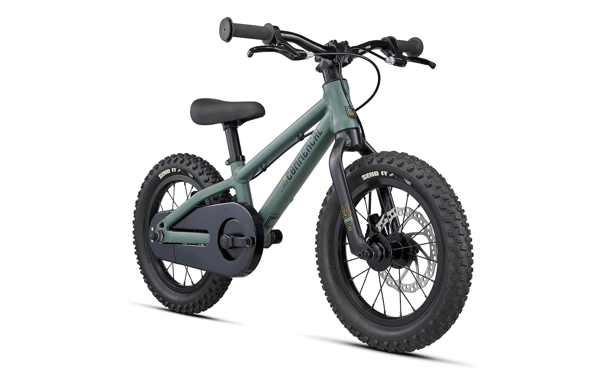 3) Ils doivent permettre une utilisation VTT, pour que l’enfant connaisse ses premières sensations sur terre en toute sécurité. Nous avons par exemple choisi les pneus à crampons qui s’approchent le plus de ceux que nous utilisons sur nos VTT d’adultes. Le gain en confort et en grip est incontestable. Ca évitera quelques égratignures sur les coudes et le genoux.
