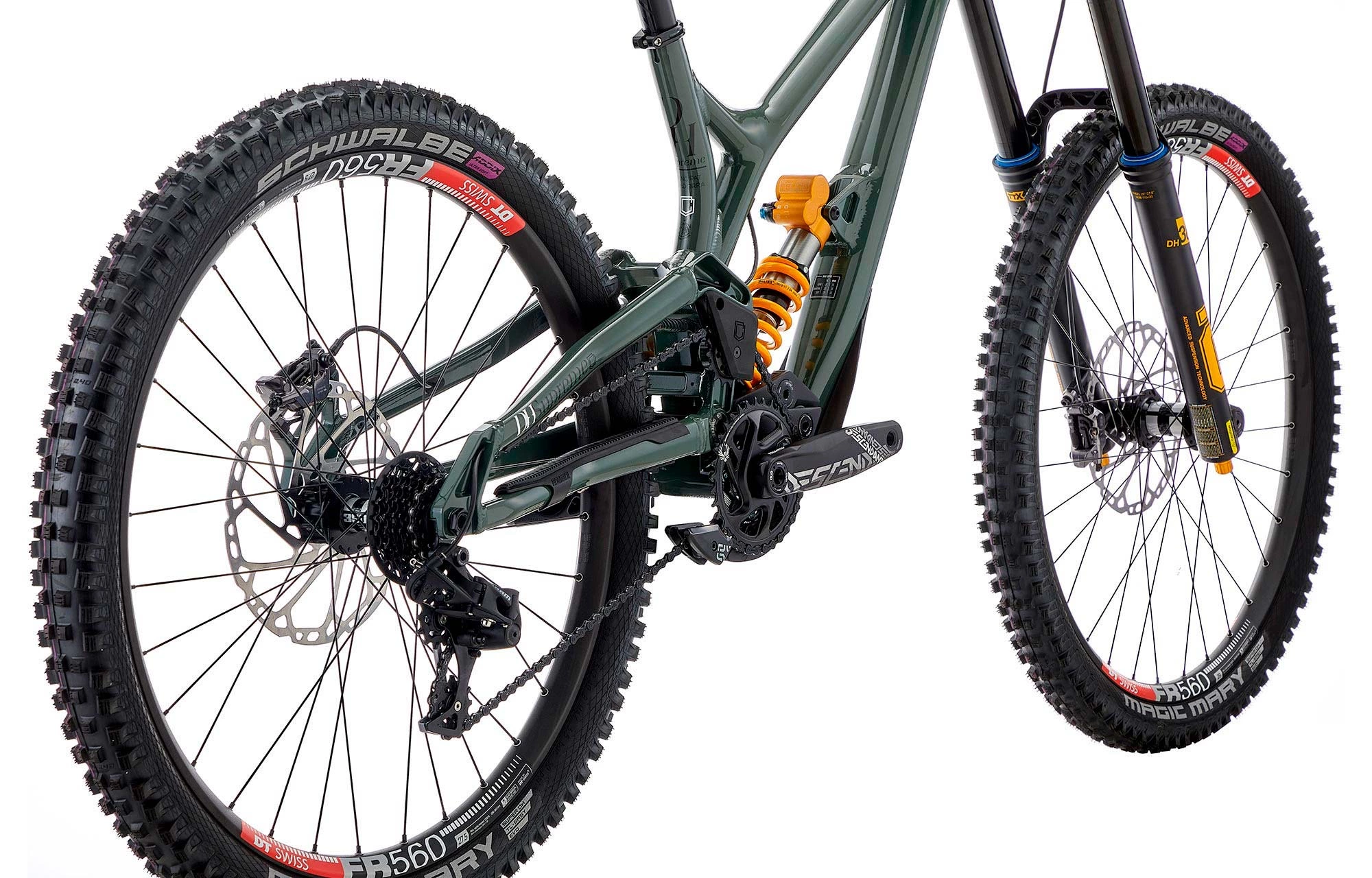 – Des roues custom DT SWISS conçues spécifiquement pour ce vélo, avec l’une des jantes DH les plus solides et dynamiques du marché actuellement, les FR 560, associées à des moyeux fiables.