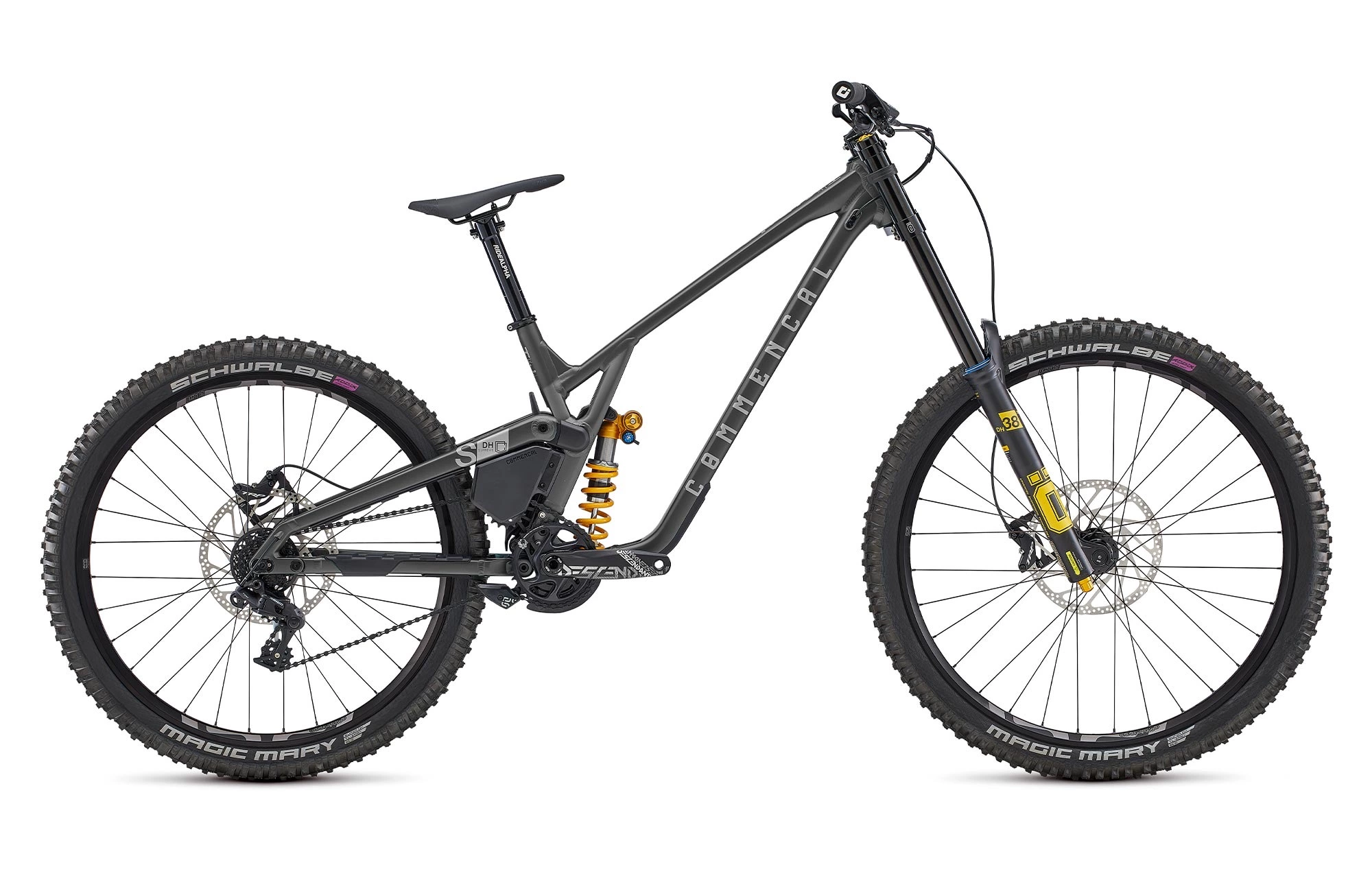 – Une fourche DH38 Air, ce qui se fait mieux pour une utilisation engagée en compétition grâce à sa grande précision dans le défoncé ainsi que des réglages hydrauliques efficients qui raviront ceux qui ont le souci du détail.