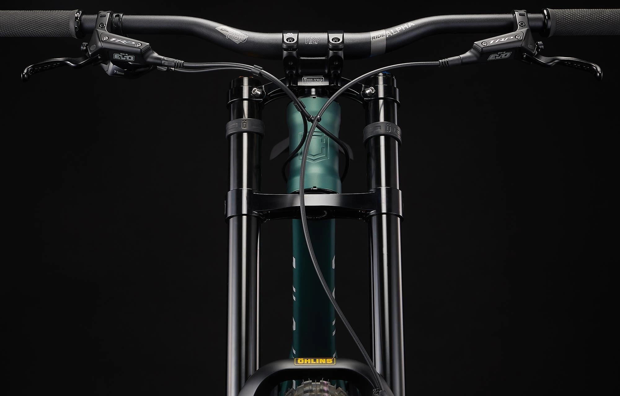 Le nouveau SUPREME DH V5 ÖHLINS EDITION avec sa superbe couleur ‘Metallic Green’ s’accorde parfaitement avec ses suspensions ÖHLINS jaune et noir.