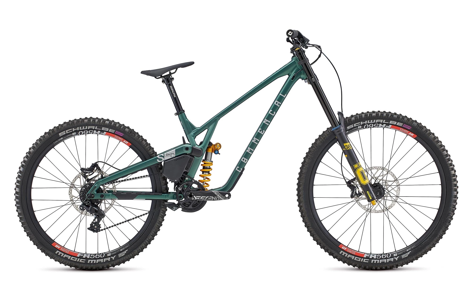 – Une fourche DH38 Air, ce qui se fait mieux pour une utilisation engagée en compétition grâce à sa grande précision dans le défoncé ainsi que des réglages hydrauliques efficients qui raviront ceux qui ont le souci du détail.