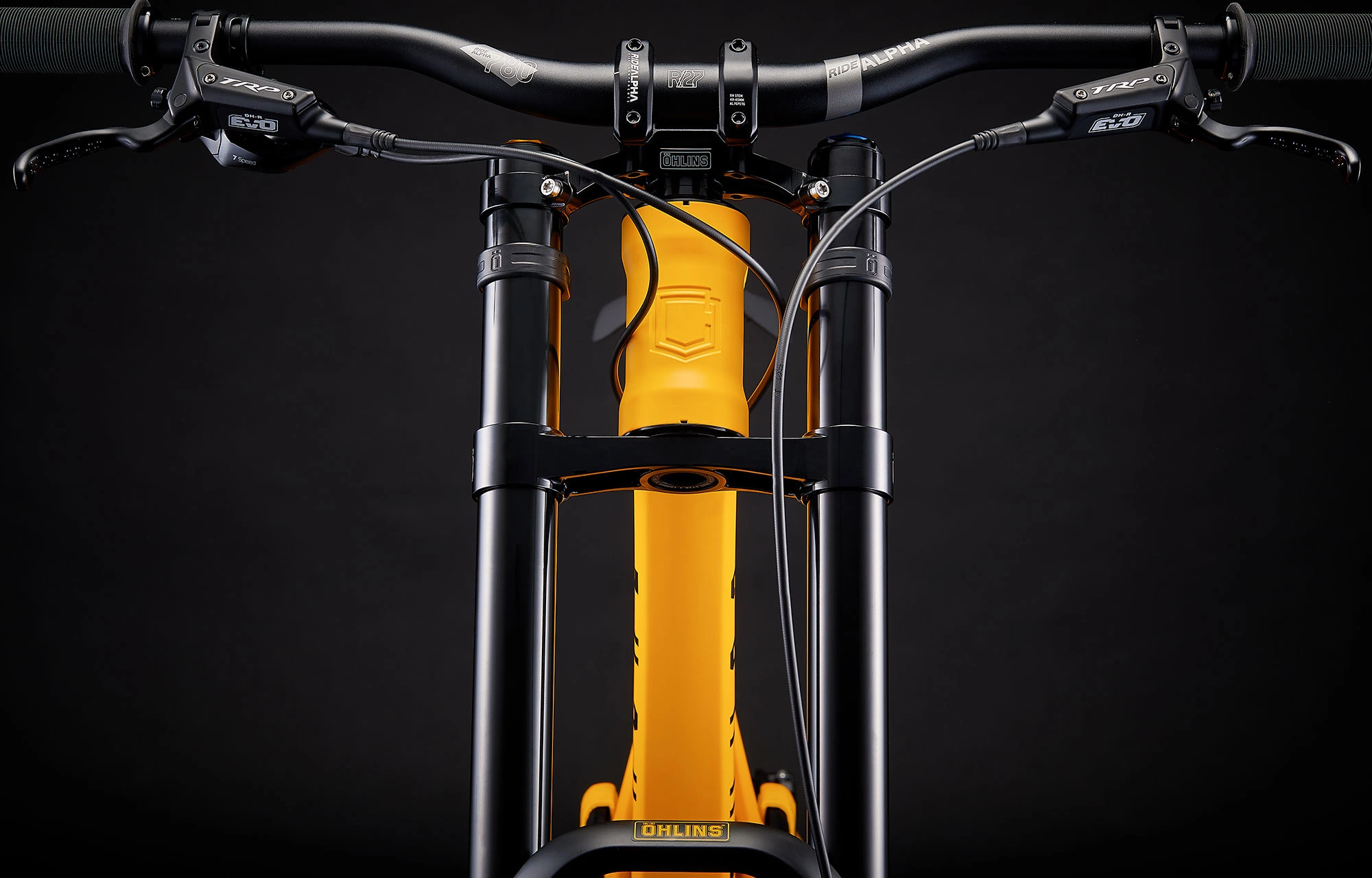 Le nouveau SUPREME DH V5 ÖHLINS EDITION avec sa superbe couleur “Yellow” s’accorde parfaitement avec ses suspensions ÖHLINS jaune et noir.