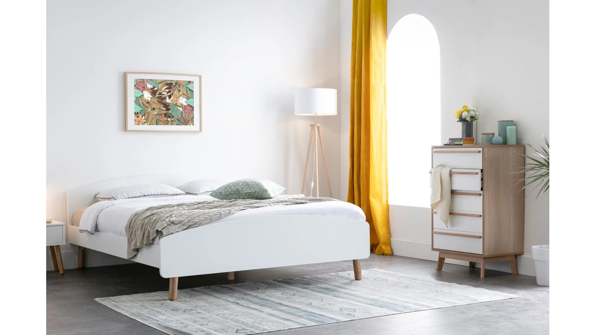 Alliance d’élégance et de simplicité, touche vintage tout en finesse, silhouette inspirée du design nordique des années 60, cette commode scandinave – dont le look aérien est un rappel du traditionnel meuble de rangement chiffonnier – séduit par ses lignes classiques et ses volumes épurés.