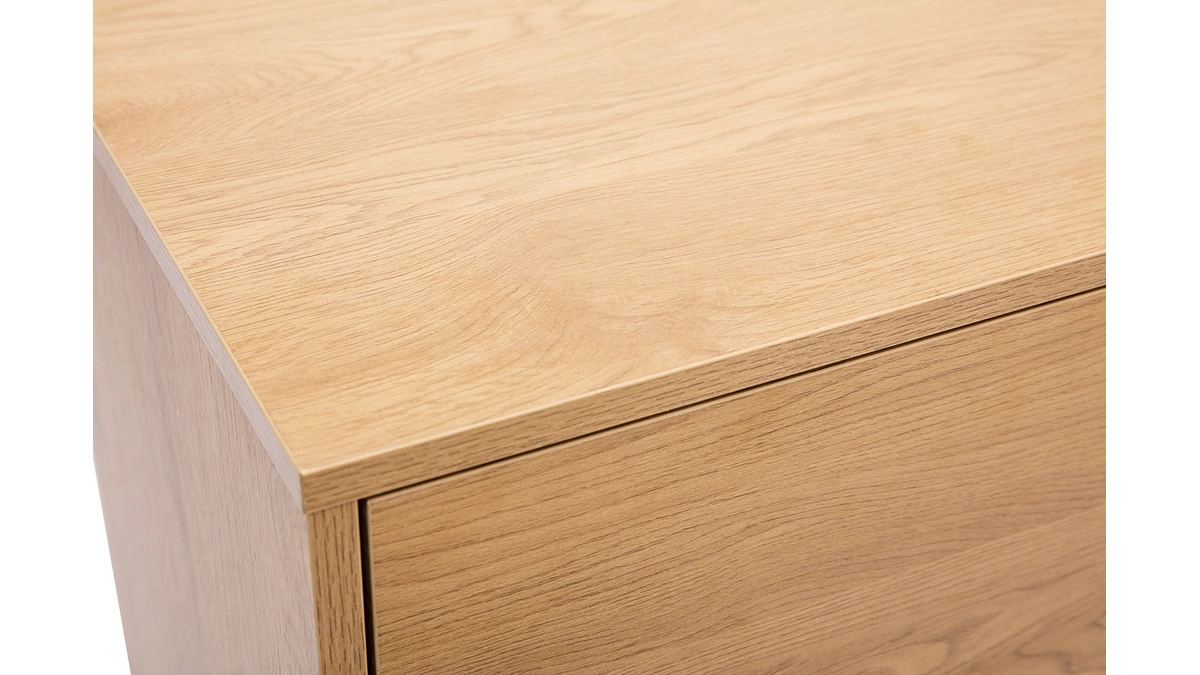 Matières : panneaux de particules de bois finition bois clair chêne (melamine) et métal