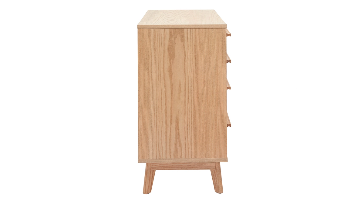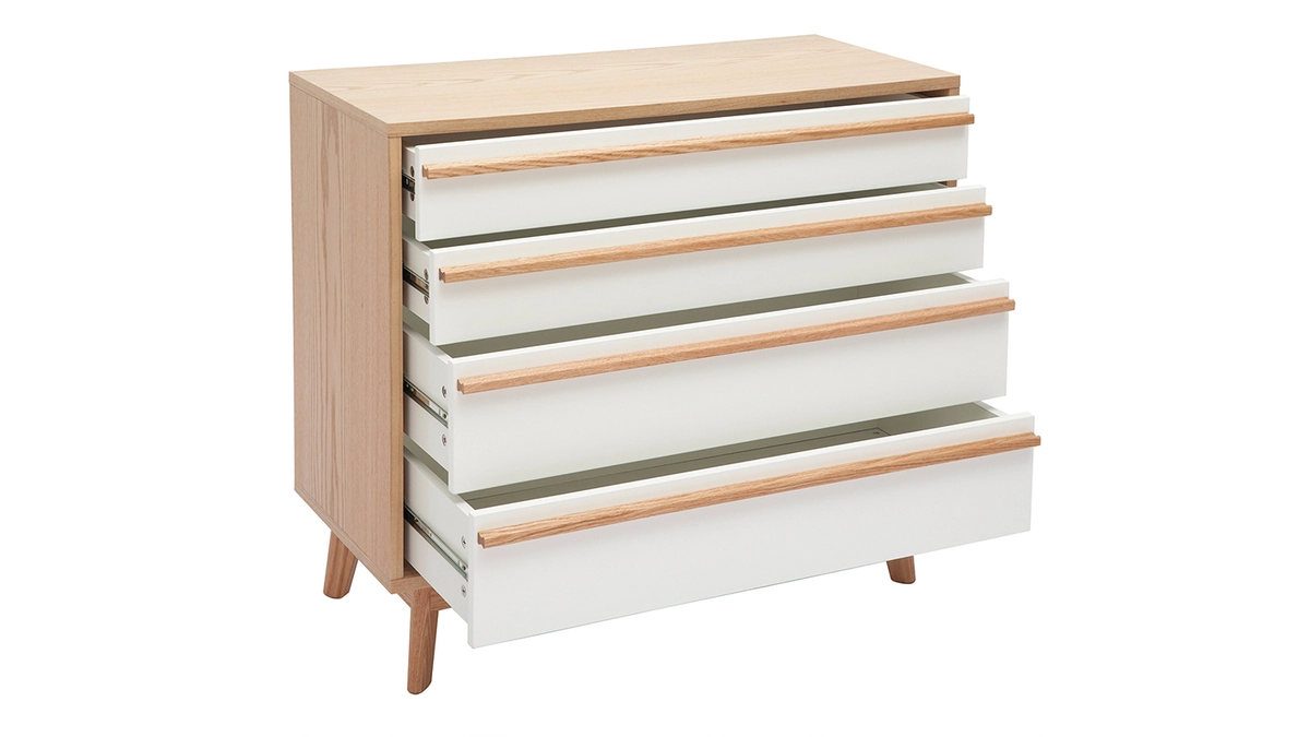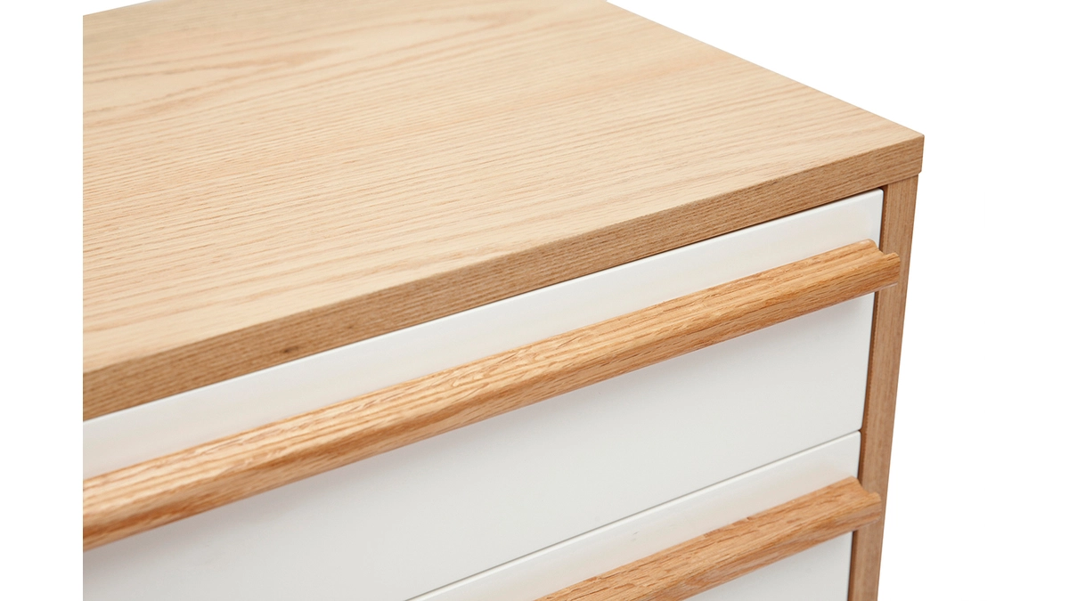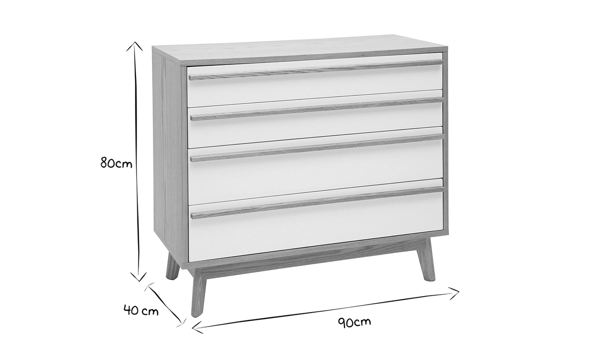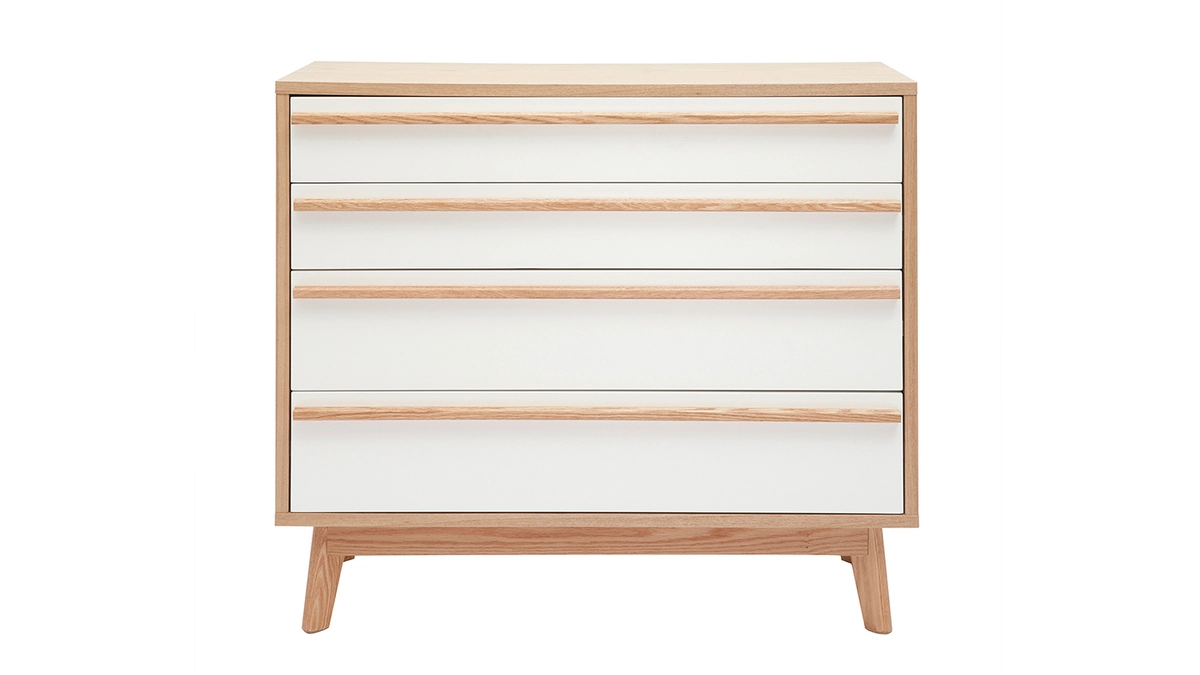 Inspirée du design rétro 60’s, cette commode scandinave possède un caractère imposant et doux à la fois. Lignes simples et harmonieuses associent avec une élégante simplicité un tandem intemporel : bois clair et blanc.