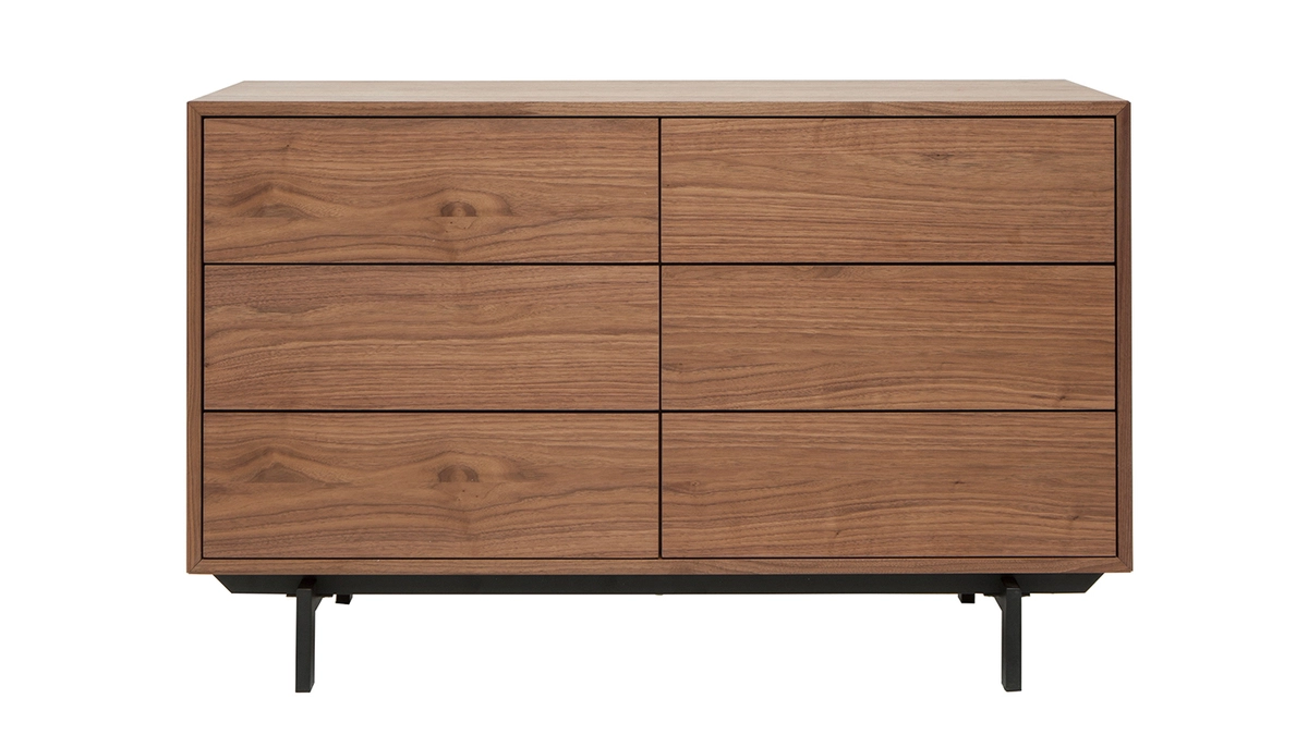 Cette commode design séduit autant par son esprit pratique que par son design tendance. À mi-chemin entre style vintage et moderne, elle associe bois foncé et métal noir avec succès. En plus d’optimiser l’espace, cette commode à tiroirs l’habillera véritablement par son look de caractère.