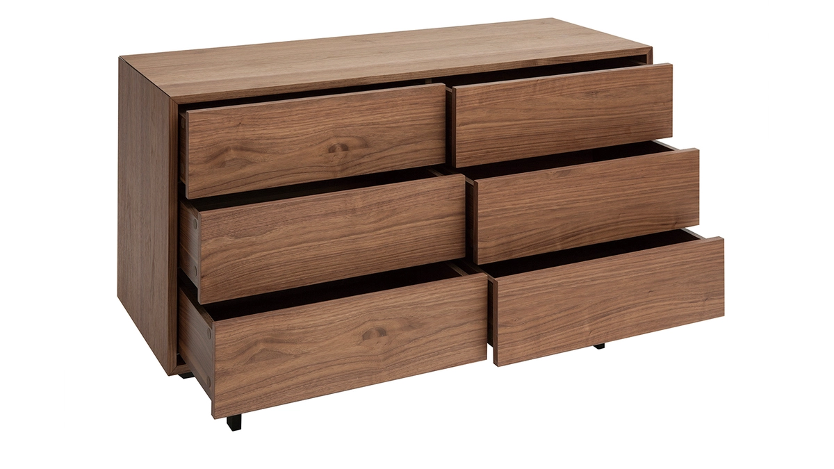 Composée de six grands tiroirs, cette grande commode aux dimensions L120 x P45 x H75 cm possède toute la place nécessaire pour organiser vos affaires. Vêtements ou encore linge de maison seront parfaitement ordonnés ! C’est le meuble de rangement idéal pour apporter des espaces de rangement supplémentaires dans une chambre comme dans un séjour.