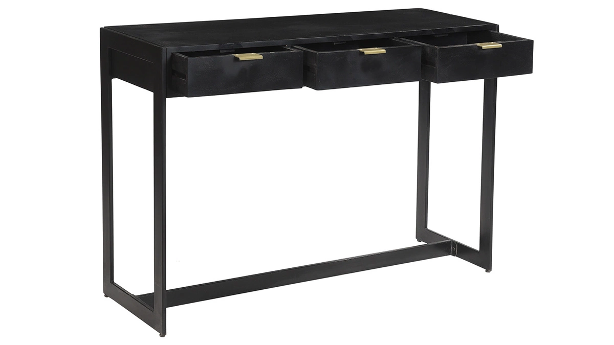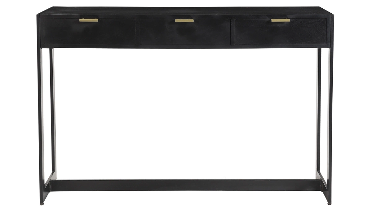 Avec ses dimensions réduites (L115 x P35 cm), la console AVIDAN se glisse dans toutes les pièces de la maison. Grâce à ses trois tiroirs, elle est parfaite en meuble d’entrée ou en coiffeuse dans la chambre. Une lampe à poser en laiton doré ou un grand miroir baroque sublimeront votre console AVIDAN.
