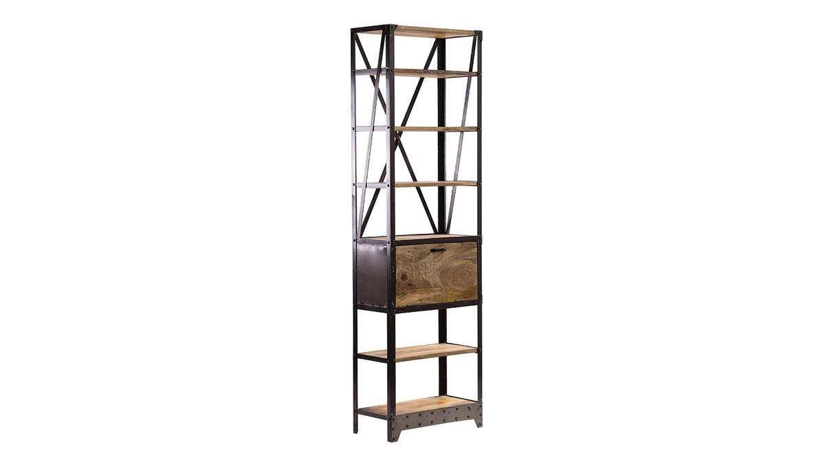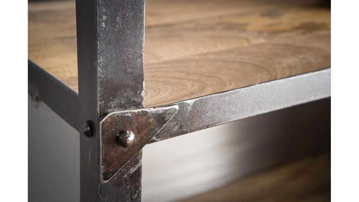 Un esprit loft très marqué pour cette étagère industrielle ATELIER : l’alliance de l’acier brut et du manguier massif, le contraste des matières et des couleurs en font déjà un futur classique !