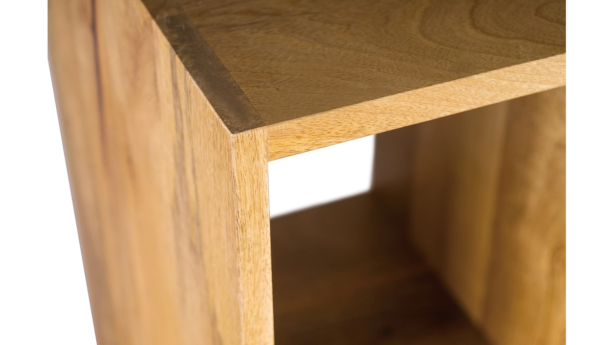 L’étagère en bois massif YPSTER a été réalisée selon des techniques artisanales et ne ressemble ainsi à aucune autre. Contrairement aux techniques industrielles, le « fait main » offre un rendu naturel et brut qui fait tout le charme de ce meuble.