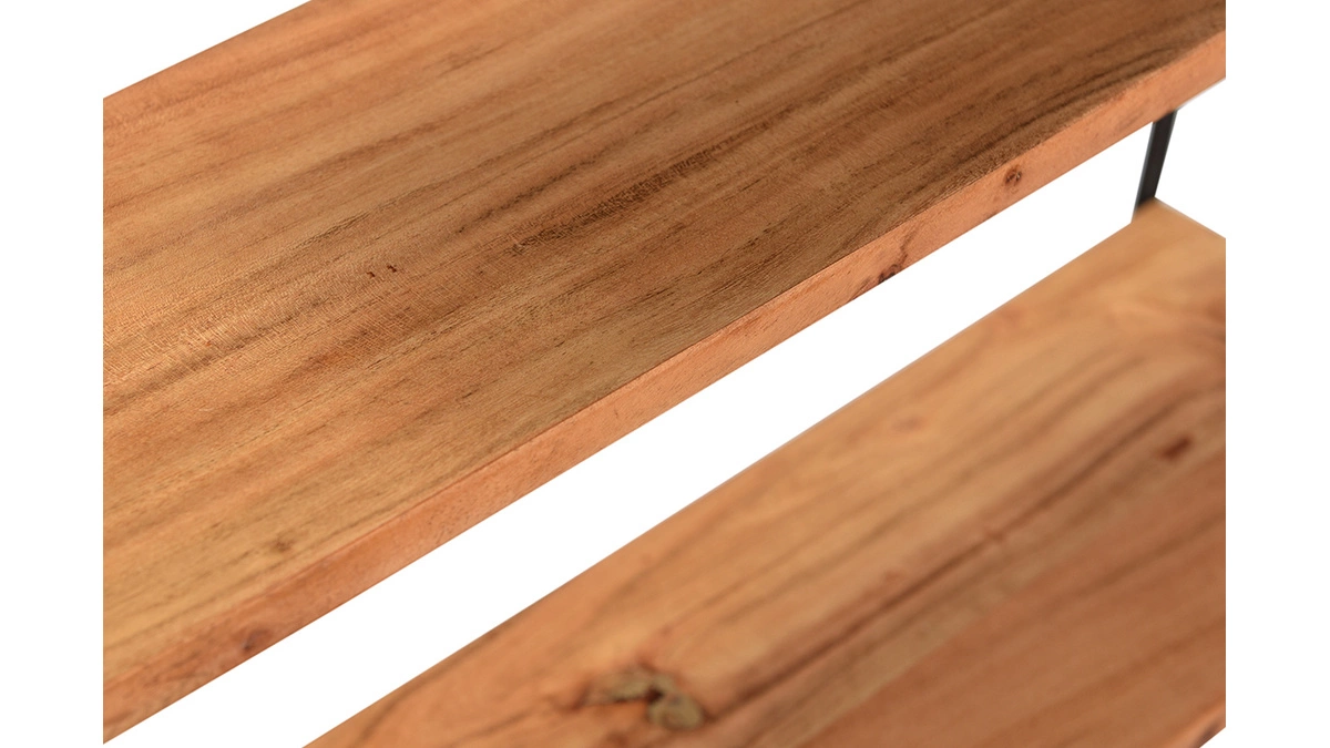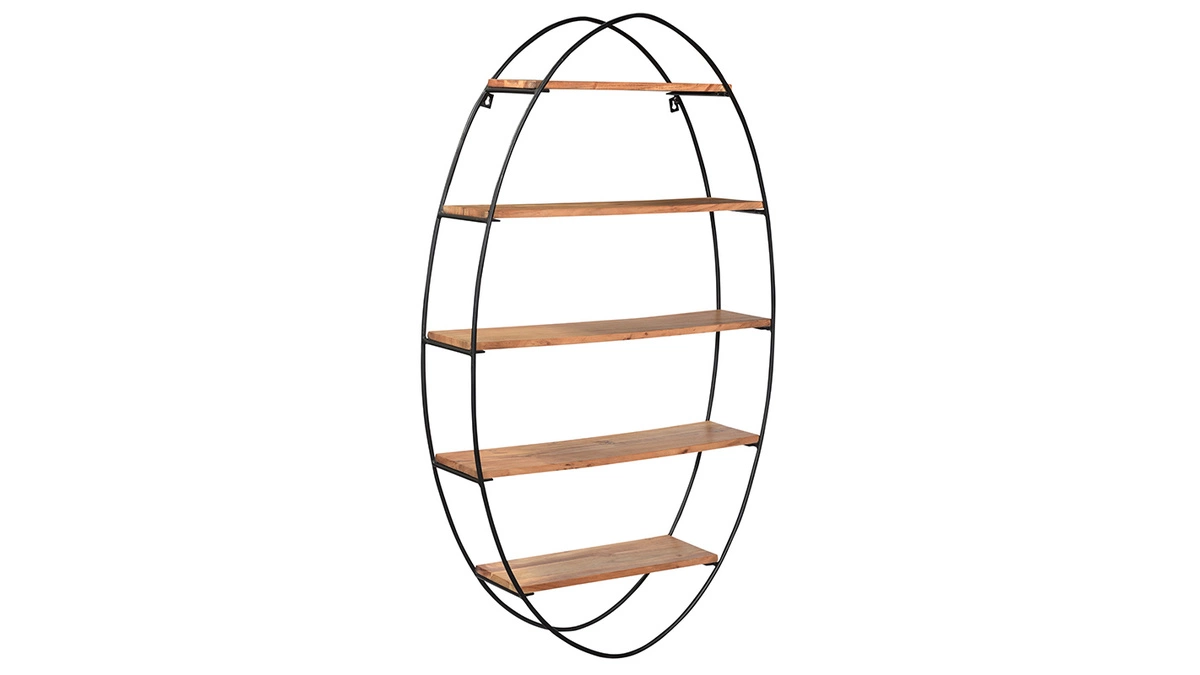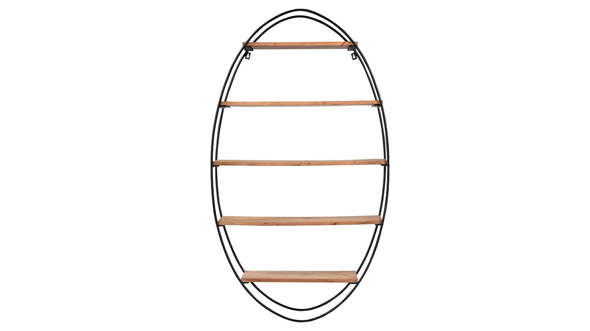 L’étagère HANG c’est une forme ovale, ultra déco, et un mélange d’acacia et de métal, rappelant le style industriel. Le tout a été réuni dans un format XL pile dans la tendance. Ses 130 cm de haut habilleront instanément le mur d’un salon, d’une chambre ou d’une entrée. En l’accompagnant d’un miroir et de quelques cadres, on crée un bel ensemble à disposer dans un couloir ou sur le mur derrière le canapé par exemple.