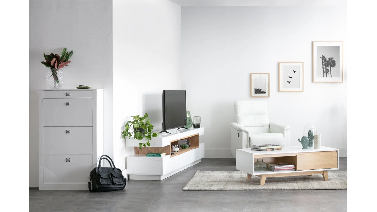Meuble à Chaussures Design Blanc Laqué Brillant L70 Cm DEVA