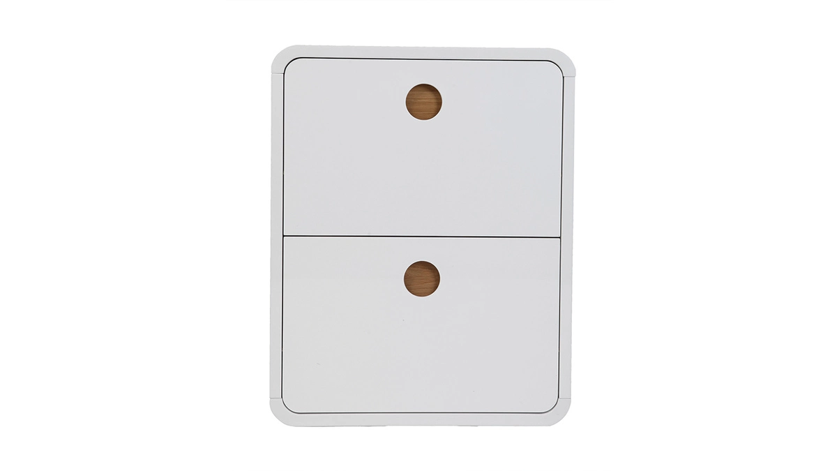 En panneaux de fibres de bois, il bénéficie d’une finition blanc brillant à laquelle s’ajoute une poignée circulaire en frêne. L’association des deux s’avère un succès. Facile à vivre, ce meuble se pose sur le sol et pour assurer un meilleur maintien, ce meuble doit être fixé au mur à l’aide d’une attache métallique fournie.