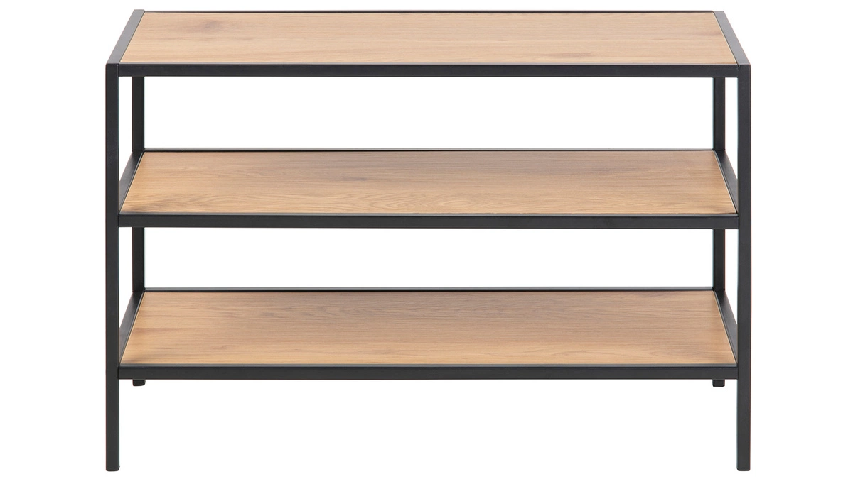 Une structure en métal noir, des étagères décor chêne, une forme minimaliste… ce meuble à chaussures réunit les qualités des meubles industriels intemporels. Ses matériaux donneront un style chaleureux et authentique à une entrée, un couloir ou une chambre. On peut accompagner le modèle TRESCA de la console assortie pour un intérieur parfaitement optimisé.