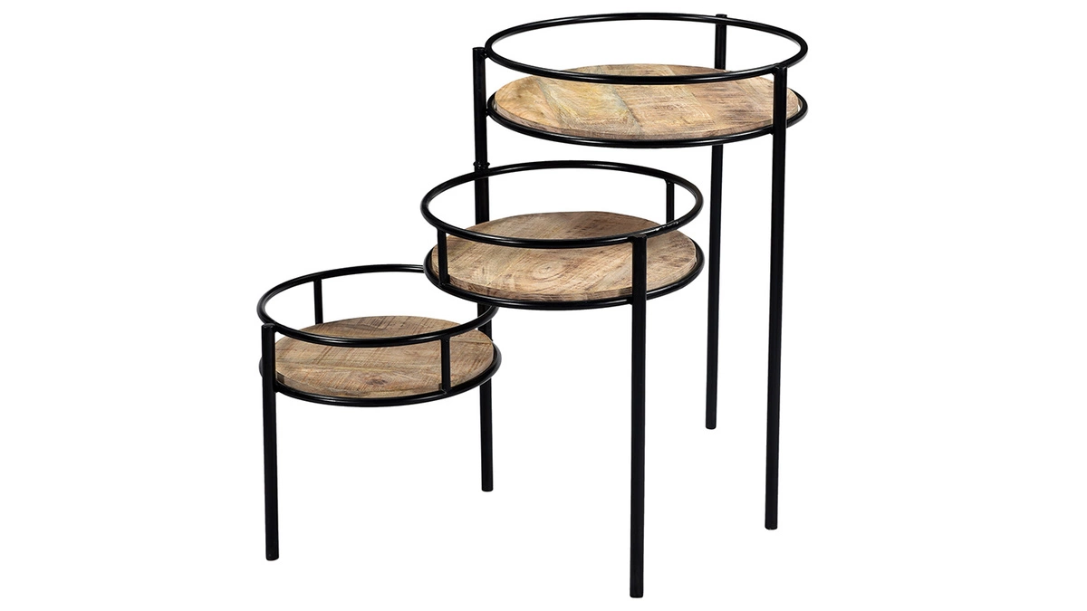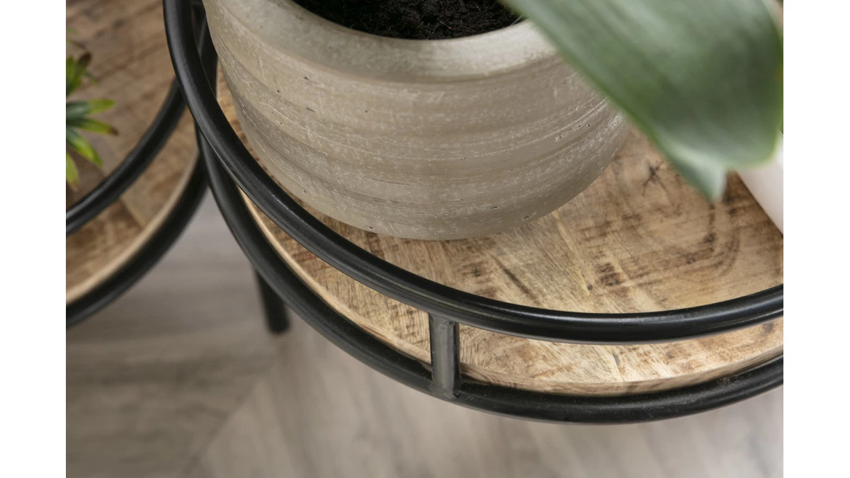 Mix élégant de manguier massif et métal noir, THREE est un objet déco à part entière ! Sa structure travaillée tout en finesse et sa forme circulaire en font un accessoire aussi discret qu’élégant. Conçu selon des techniques artisanales, ce support pour plantes affiche un look authentique. Cette meuble déco au style brut trouvera sa place aussi bien dans un salon que dans une entrée.